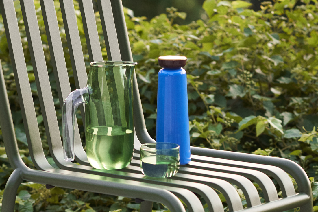 熟練したガラスアーティスト、ヨッヘン・ホルツがデザインしたガラス製の水差し。変化をつけた縁とカーブするハンドルによって、力強さがありながら優雅な表情もあり、シンプルで有機的なデザインになっています。