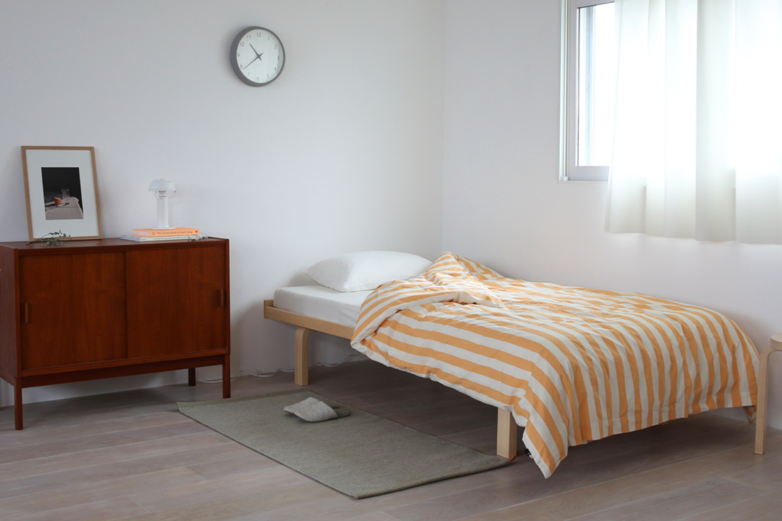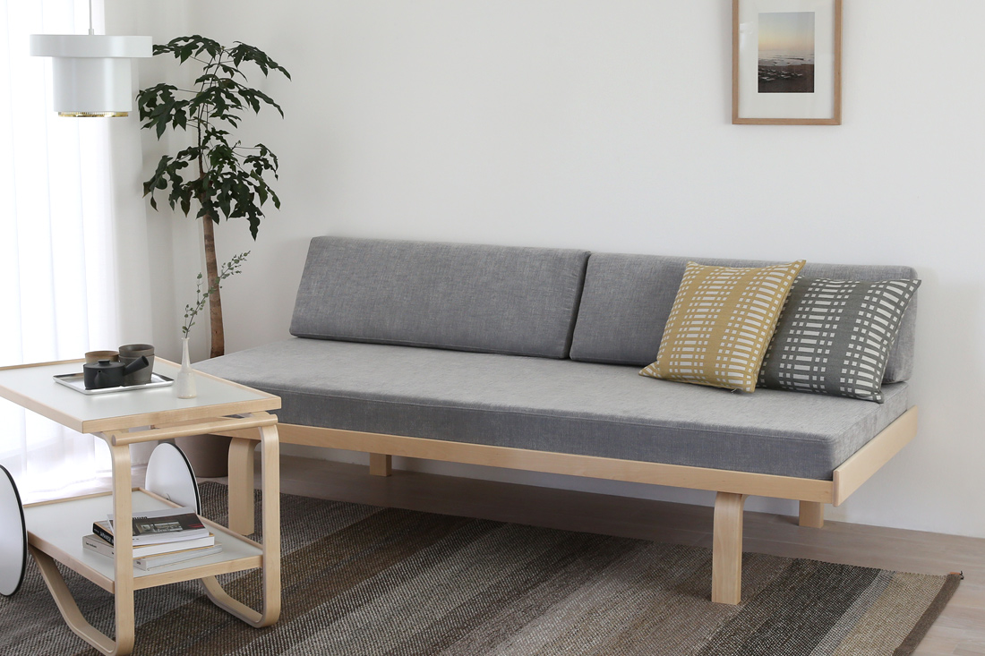 710デイベッドは、「北欧の賢人」と呼ばれたAlvar Aalto(アルヴァ・アアルト)が開発した曲げ木の技術「L-レッグ」を応用した頑丈な構造をしています。ソファとしてはもちろん、ベッドのようにゴロンと横になったりなど、ライフスタイルに合わせて自由にお使いいただけます。