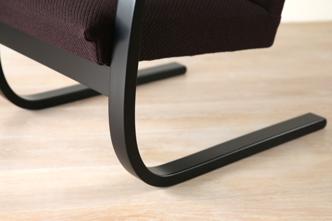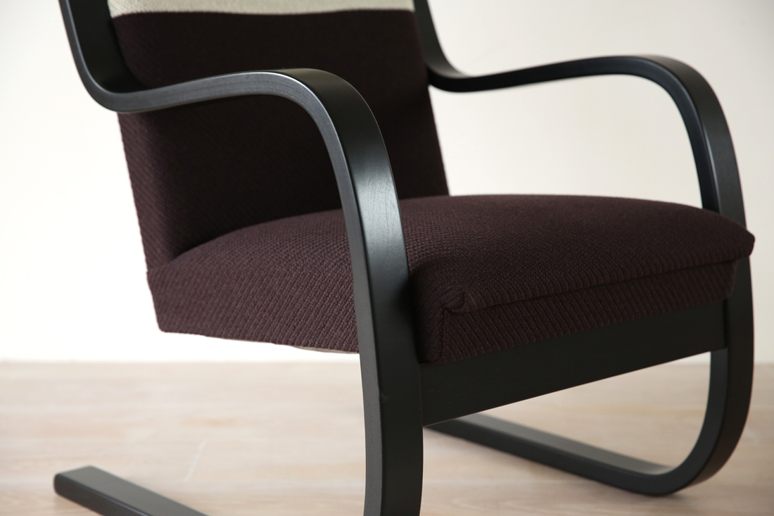 Armchair 401は脚とアームのフレームが一体になった構造の為、このアアルト特有のループパーツを楽しめる家具の一つです。