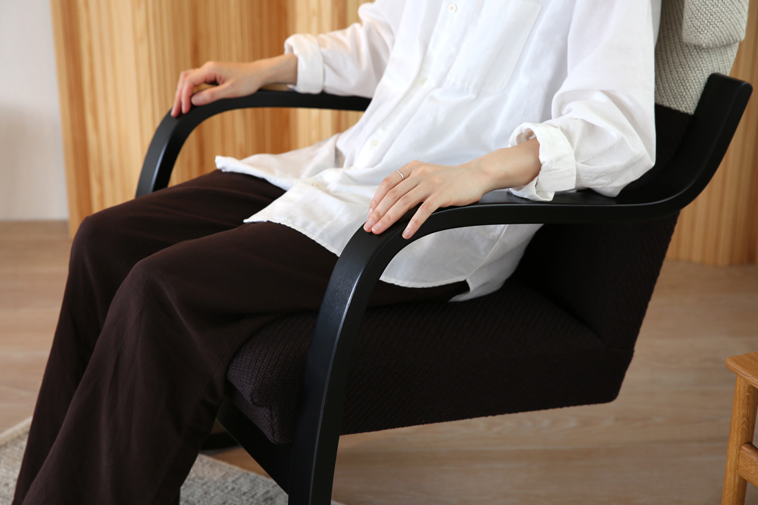 ・「デザインに惹かれて購入しましたが、実用性にも驚きました。アームレストが絶妙な高さで、リラックスできます。バーチ材の温かみが部屋全体を明るくしてくれます。」(30代・男性)