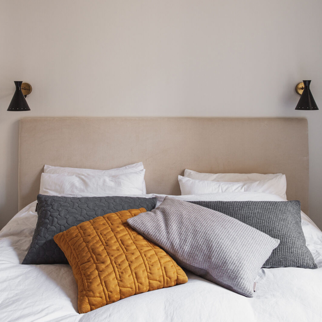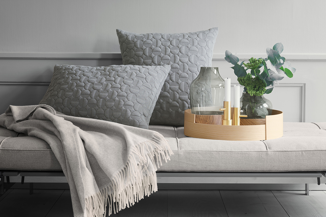眠るための枕とは役割を分け、視覚的なアクセントとして取り入れることで、一日の終わりにふさわしい、静かな空間をつくることができます。