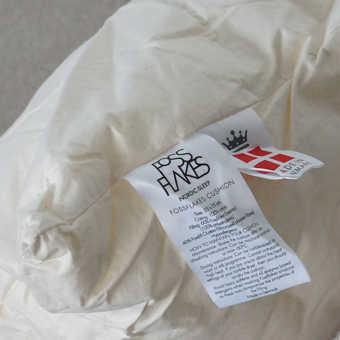 AJクッションの心地よさを支えているのが、中材に使われている「Fossflakes(フォスフレイクス)」というデンマーク生まれの素材です。