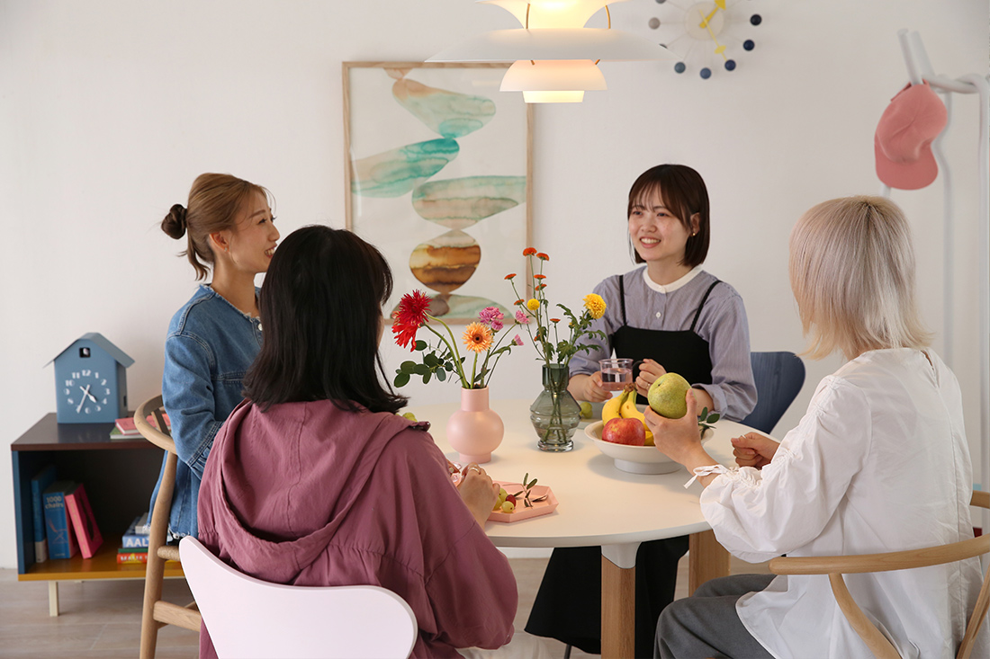 特に4人掛けなら、お茶やおしゃべりを楽しむひとときにちょうどよく、それぞれのパーソナルスペースもきちんと保たれます。対面でも遠すぎず、近すぎず。視線と心が自然と交わる距離感です。