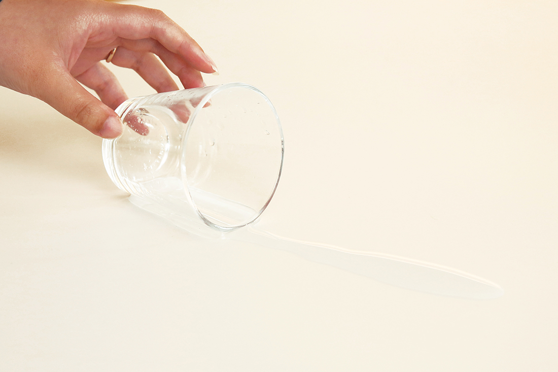 ホワイトラミネートの天板は、さらりとしたマットな質感で、傷にも汚れにも強い素材。液体をこぼしてしまっても染み込まないのでさっと拭き取れます。