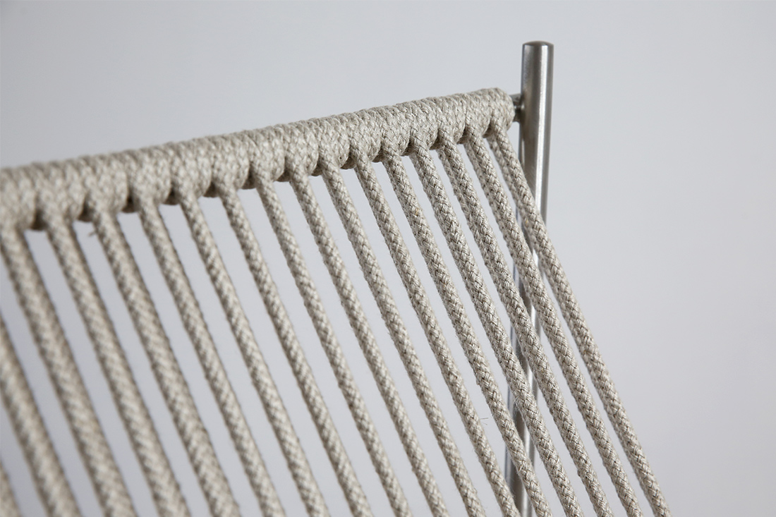 PK4の大きな特長は、座面と背面が麻のロープでできていること。
