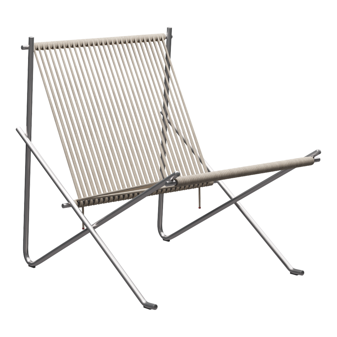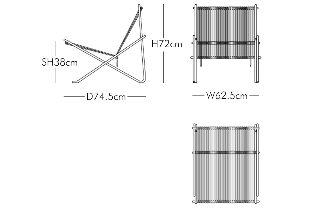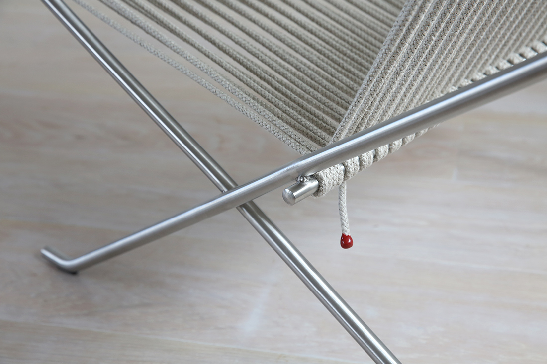 7本のステンレススチールと1本の長い麻ひもからなるシンプルさを極めた構造で、PK25の研ぎ澄まされたシルエットを引き継ぎながらも、生産コストを大きく下げることに成功しました。