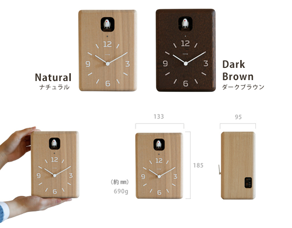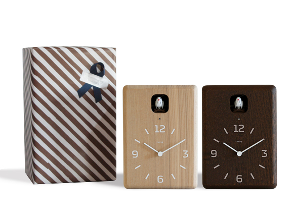 モダンでかわいい鳩時計CUCUP(ククップ)からナチュラルとブラウンが仲間入りしました。CUCU(クク)やYokan(ヨウカン)などをデザインしている奈良雄一さんデザイン。