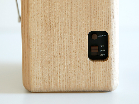 側面にリセット、時報設定ボタン、ボリューム調整があります。