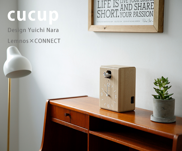 pはイタリア語「piccolo(小さい)」のpです。小さいCUCUということで、cucup(ククップ)という名前なんです。日本代表するデザインクロックメーカーLemnos(レムノス)さんでのコネクト別注クロックです。