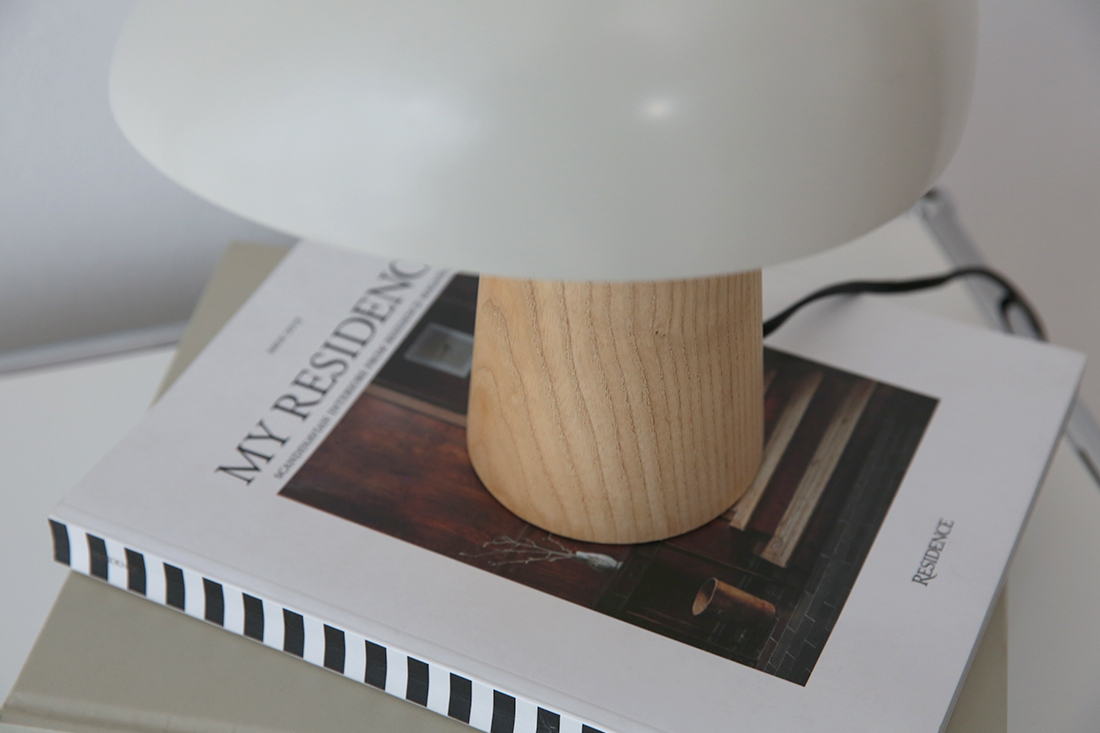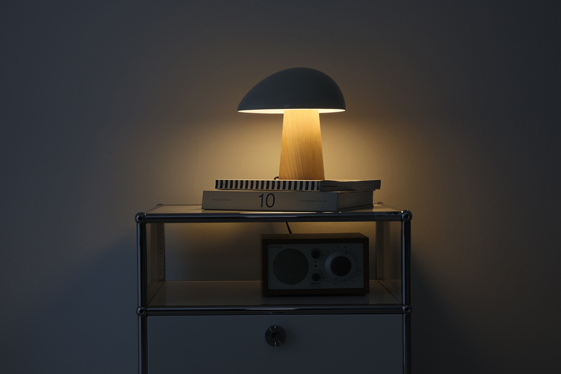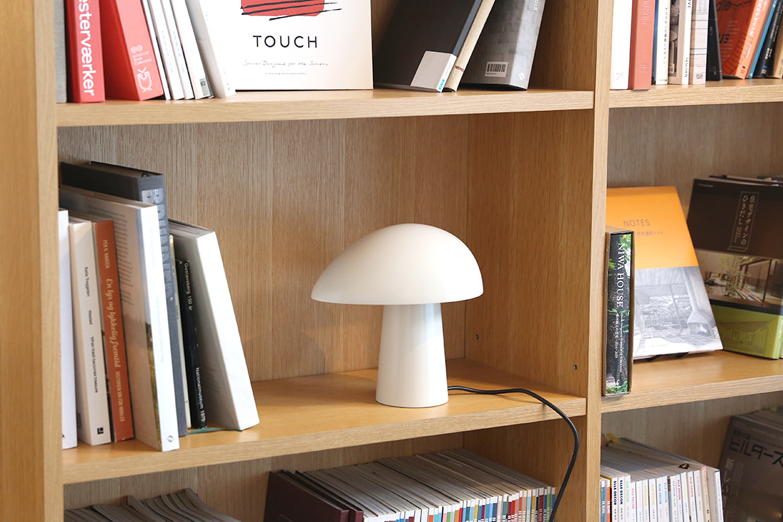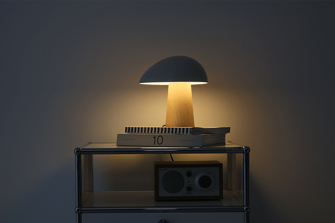 アッシュの部分が無垢材で出来ており、シェードもマットな仕上げなことから、北欧インテリアの魅力である素材感を感じることができ、無機質な場所でもナイト・オウルを置くと有機的なフォルムとアッシュ(無垢)の部分が程よく中和してくれます。