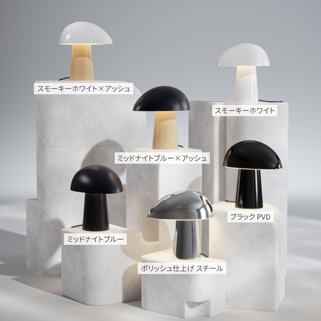 カラーは「スモーキーホワイト」「ミッドナイトブルー」「スモーキーホワイト×アッシュ」「ミッドナイトブルー×アッシュ」の4種類に加えて、2023年9月より「ポリッシュ仕上げ スチール」「ブラック PVD」も加わり、全6種類からお選びいただけます。