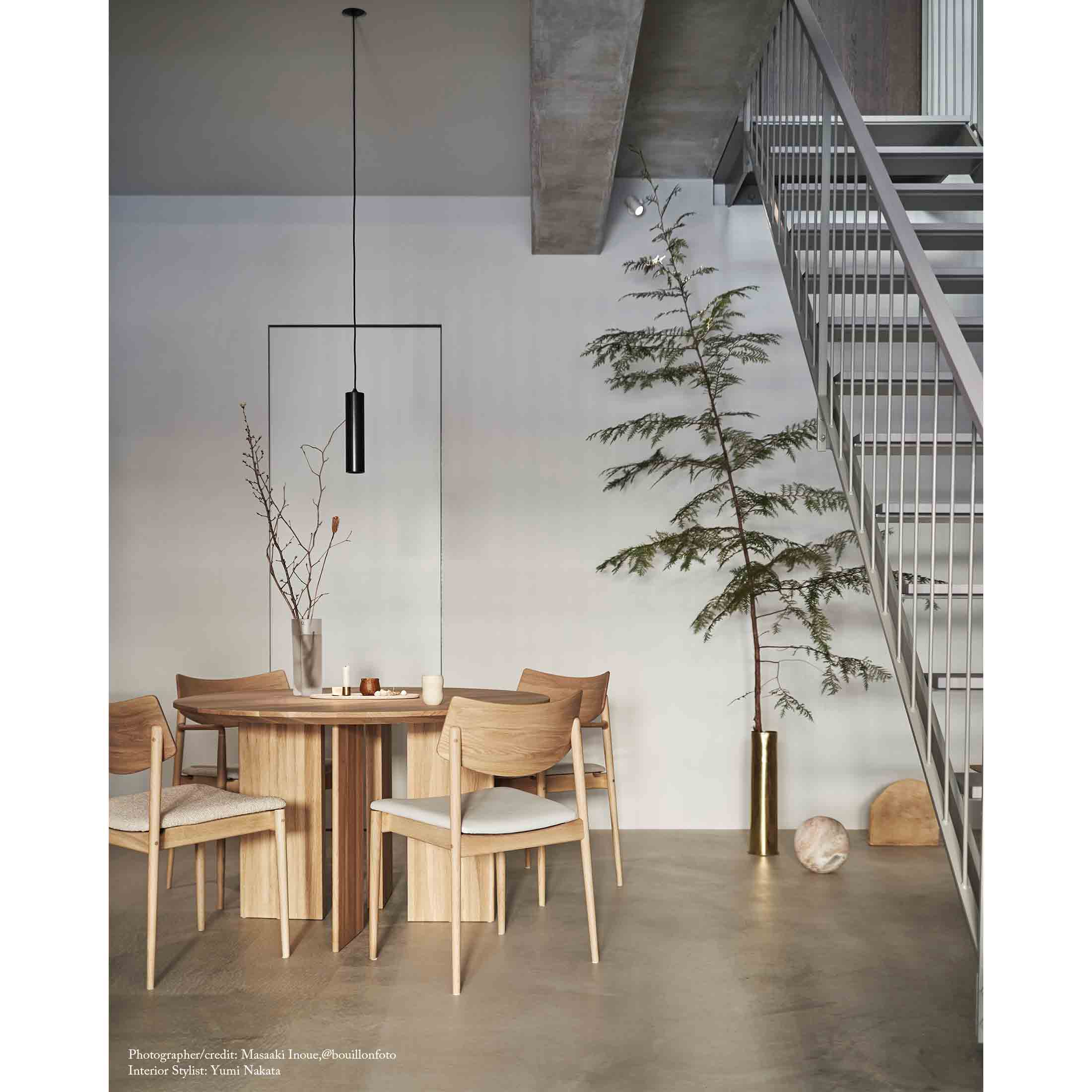 テーブルとチェアには、同じ“ピュアオーク材”を使用。木の表情、色合い、質感が統一され、空間にやわらかな統一感と落ち着きをもたらします。