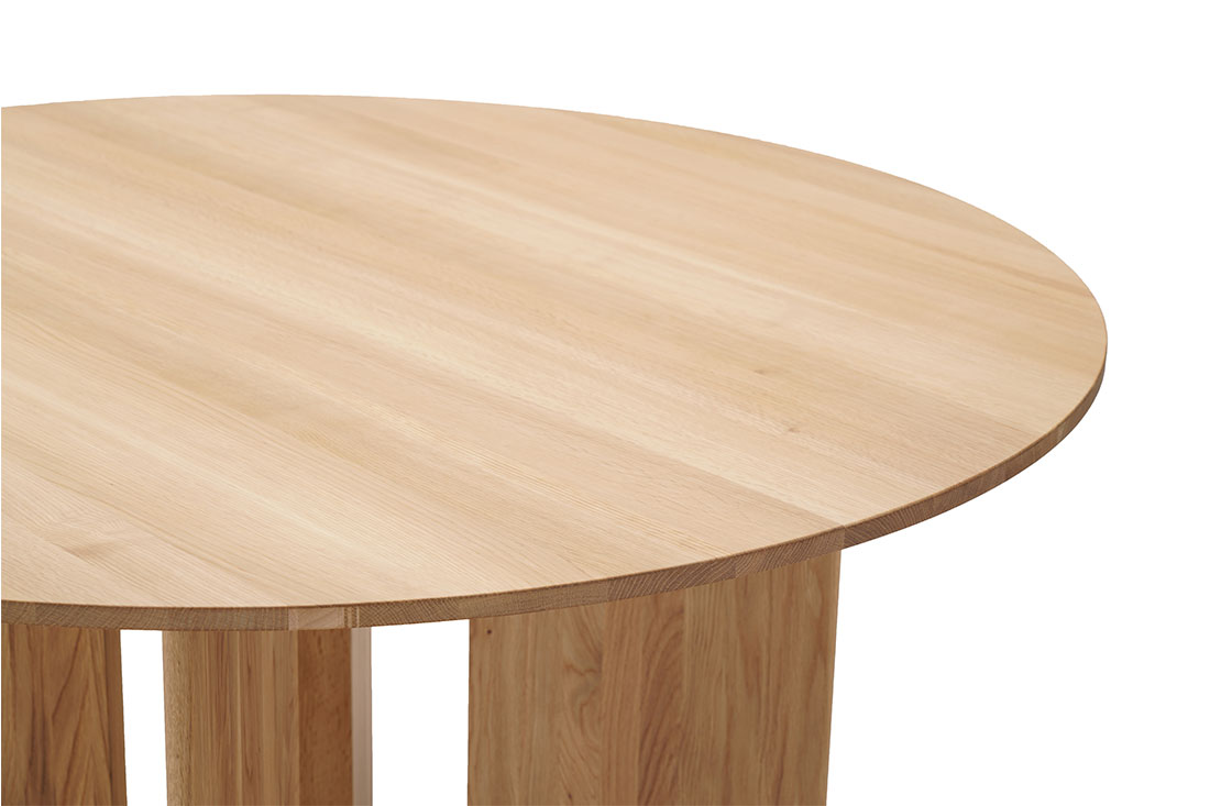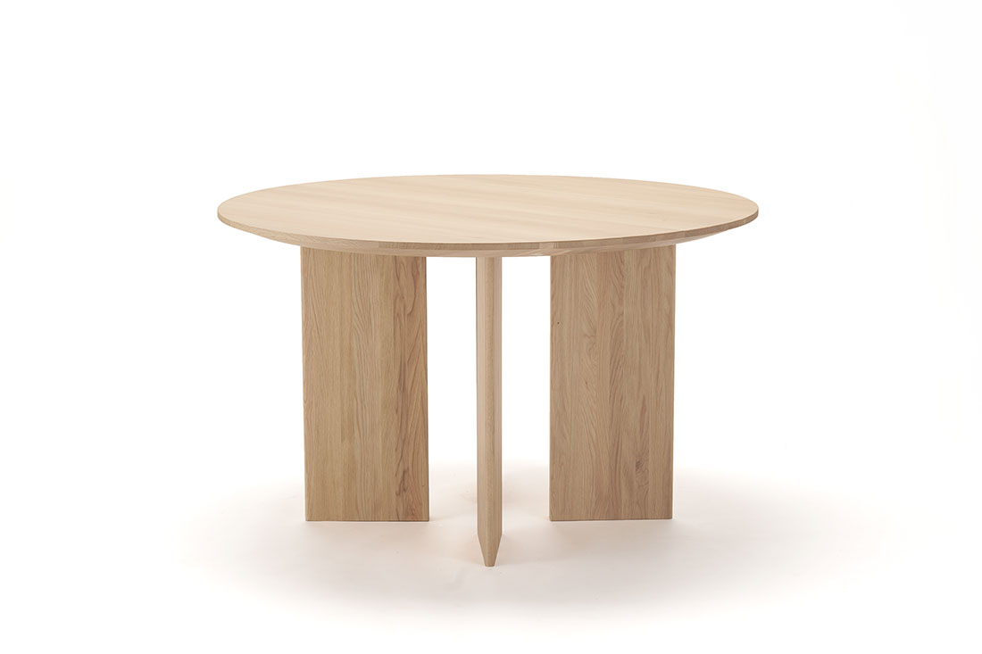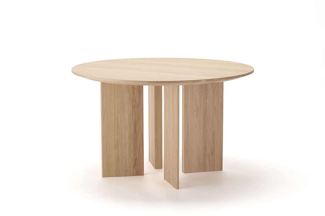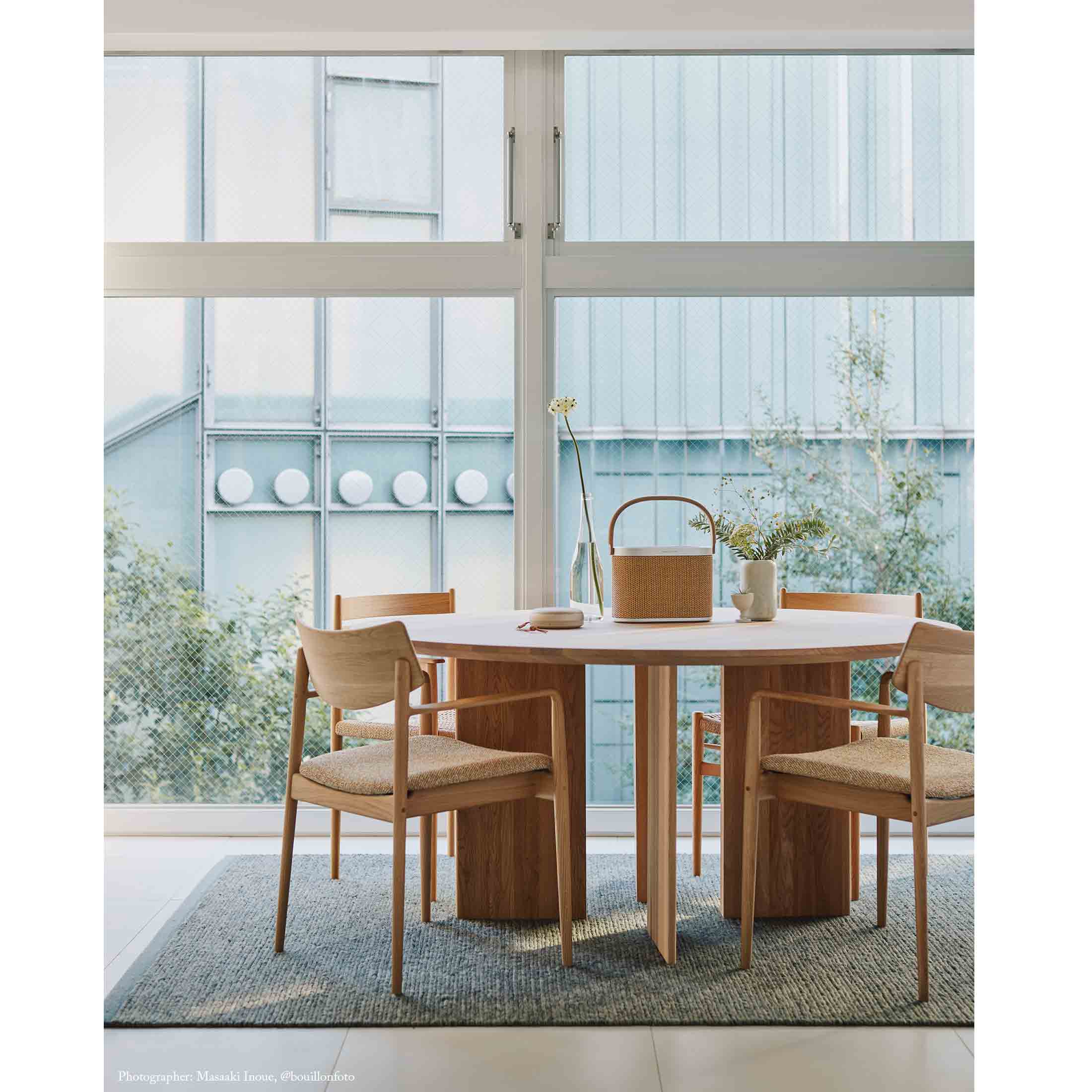 直径120cmの円形テーブルは、2人から4人でゆったりと囲むのにちょうど良いサイズ。角がないことで自然と視線が交わり、家族や友人との会話がはずむ、あたたかな食卓を演出します。
