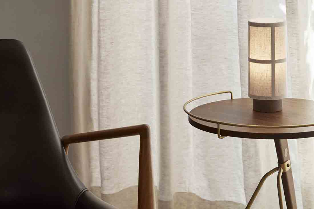 和紙のような風合いを持つリネンシェードと、そこから広がるやさしい光は、置く場所を選ばず、リビングやベッドサイドなど、さまざまなシーンに寄り添います。