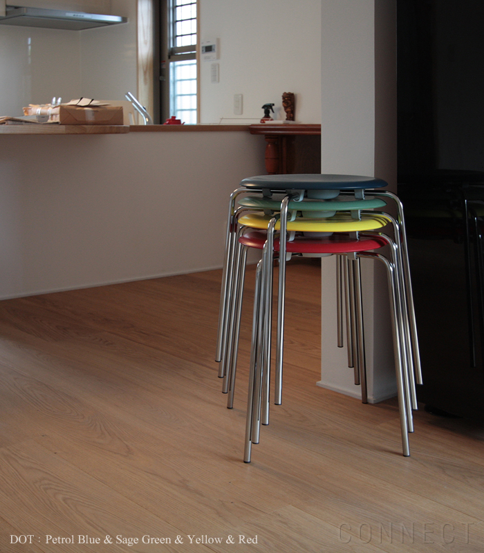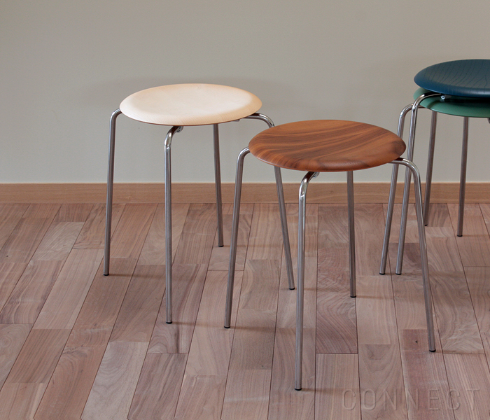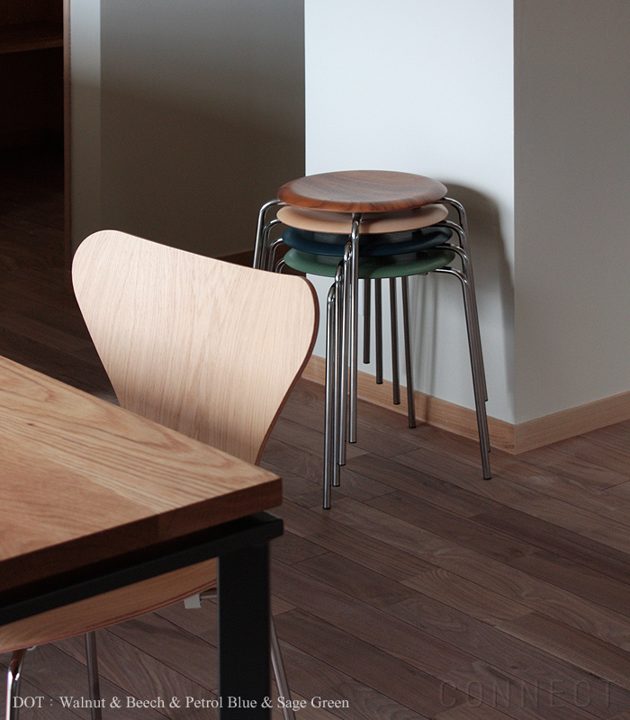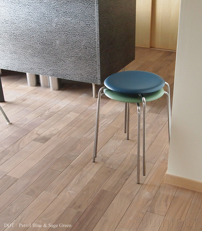 Arne Jacobsen(アルネ・ヤコブセン)デザインの「Dot(ドットスツール)」は、 1952年にアリンコチェアを発表した翌年の1953年に発表されたものです。 発表後の当時はデンマークのタウンホールの通路に数脚ずつ並べられて使用されていました。
