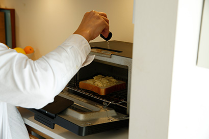 トースター上部にお水を入れることができるため、冷凍していた食パンでもパサパサにならず、焼きたてパンのようにふわふわ。