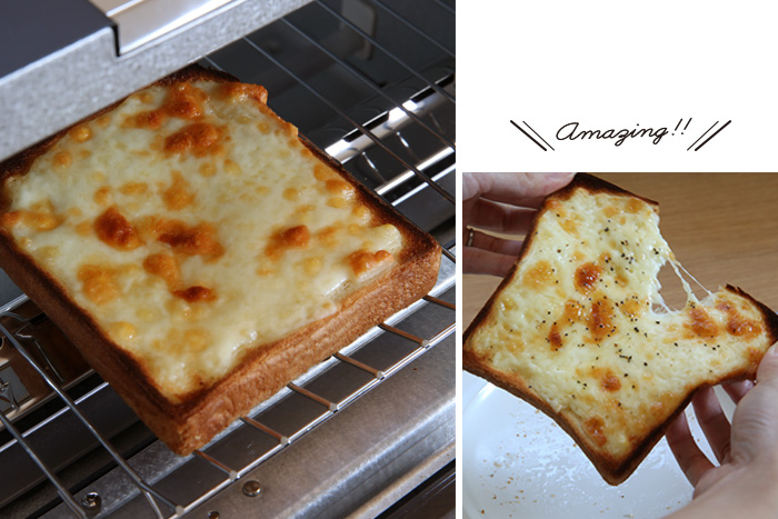 シンプルにバターを塗ったトーストもおいしいけど、チーズトーストも最高。