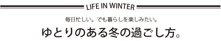 寒い冬に、毎日の暮らしの中で大切にしたいホッとする時間を紹介します。