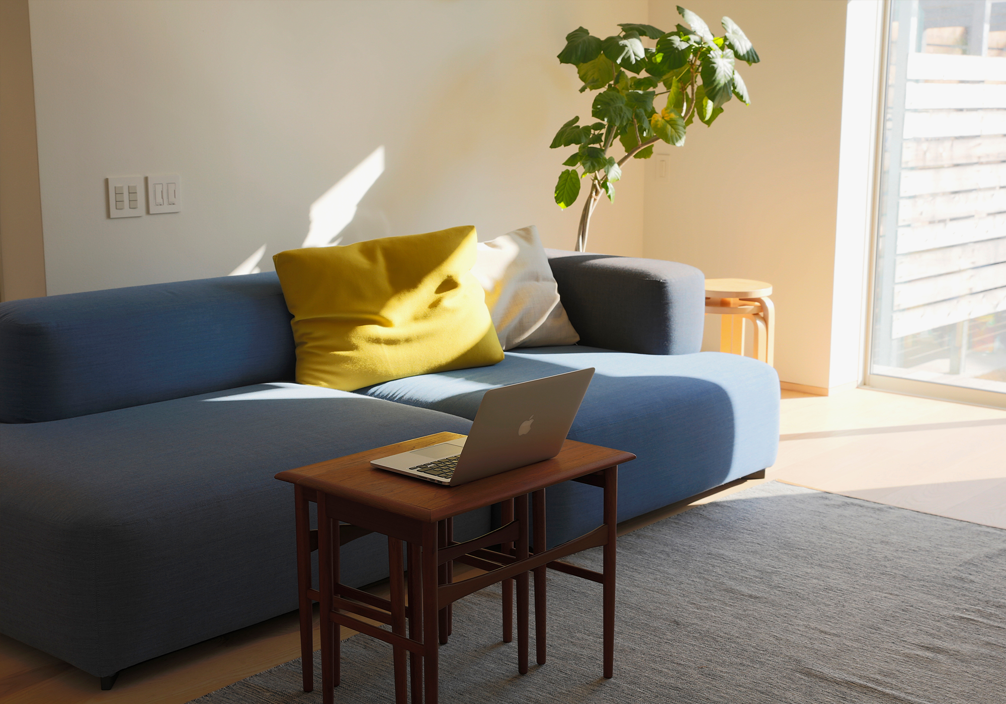 質感の面でいうと、座ることによる摩擦で毛は使うほどに従順になり、ざっくりとしたリネンのような滑らかな質感に育ちます。さらに、日常的な掃除機掛けで余分な遊び毛が消えていき、ウール本来の光沢が呼び起こされます。